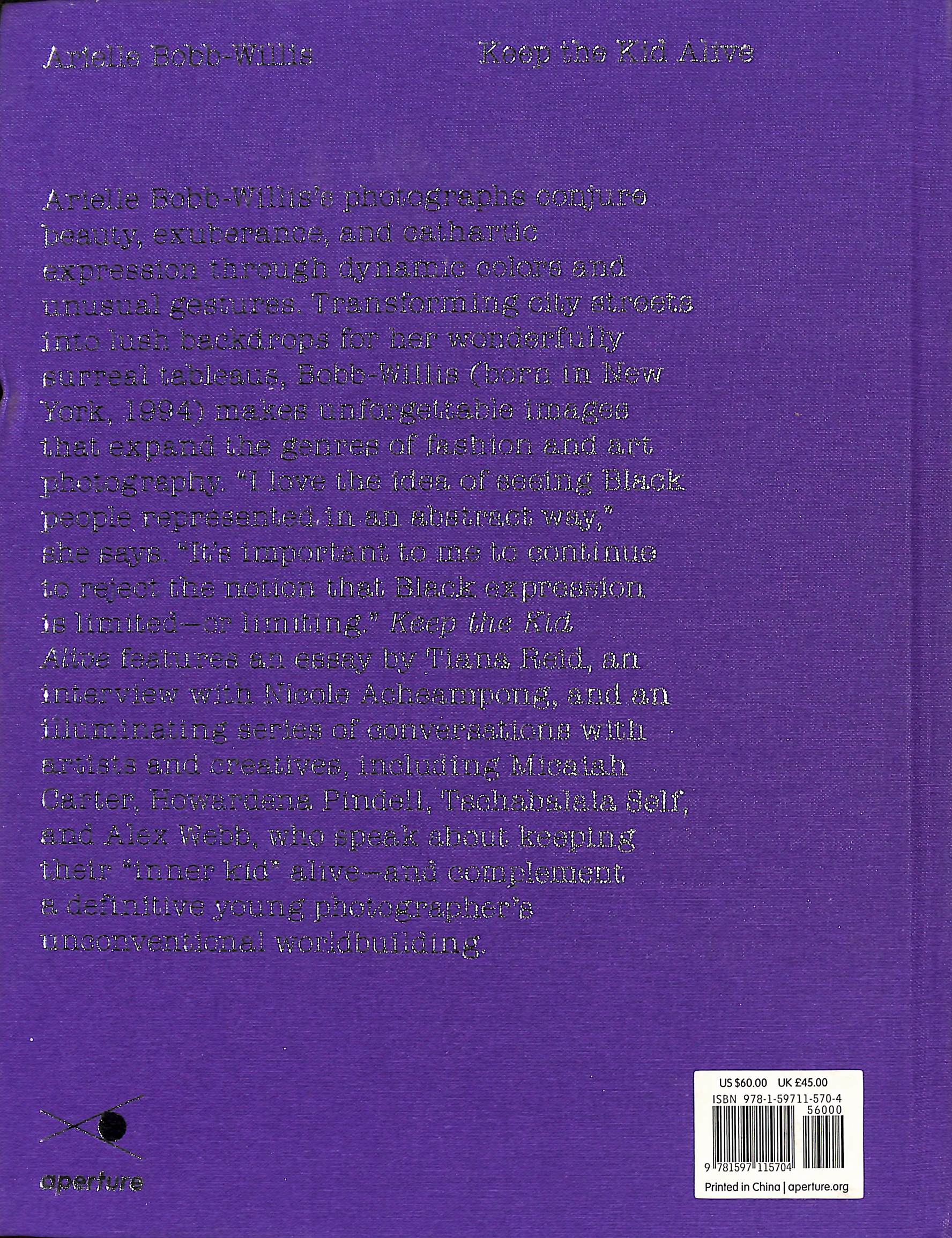 Keep the Kid Alive, Arielle Bobb-Willis’s first book, invites audiences into a brightly imaginative world, filled with dynamic colors, gestures, and unusual poses of the artist’s own creation. Transforming the streets of New Orleans, New York, and Los Angeles into lush backdrops for her wonderfully surreal tableaus, Bobb-Willis makes unforgettable images that expand the genres of fashion and art photography. “I love the idea of seeing Black people represented in an abstract way,” Bobb-Willis says. “It’s important to me to continue to reject the notion that Black expression is limited—or limiting.” With a conversation between Bobb-Willis and a dynamic range of artists, stylists, and creatives who speak about keeping their “inner kid” alive, this book captures a definitive young artist’s unconventional worldbuilding.