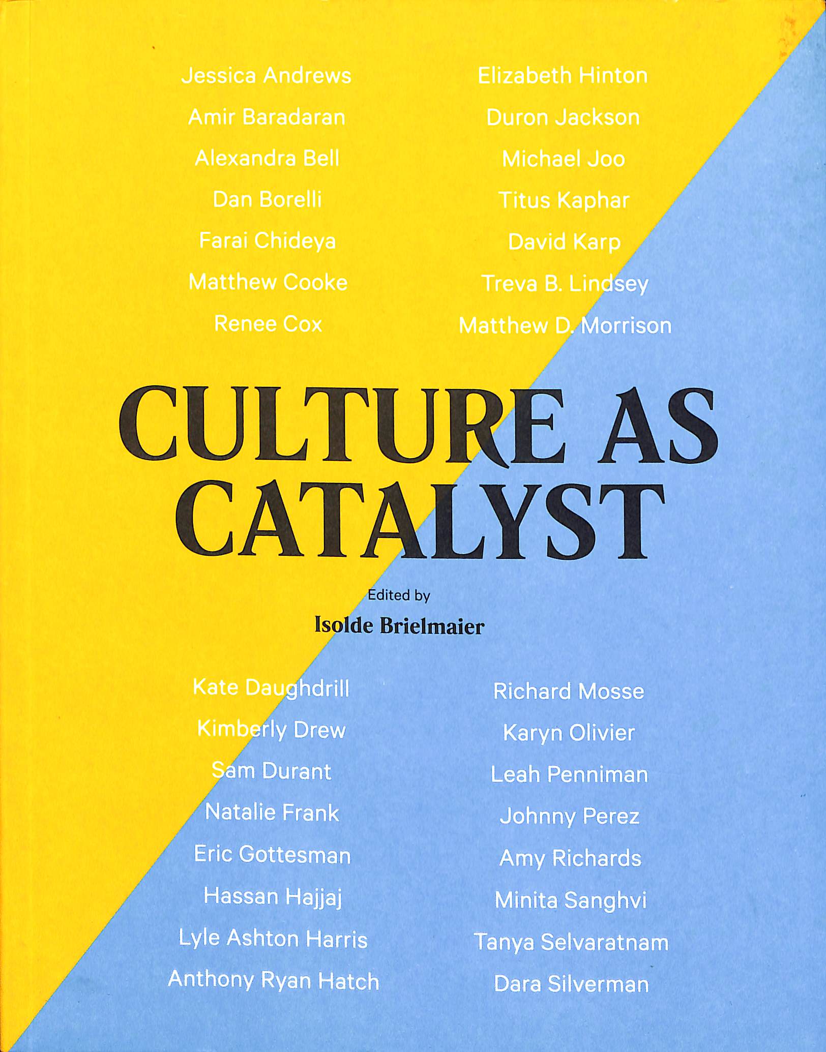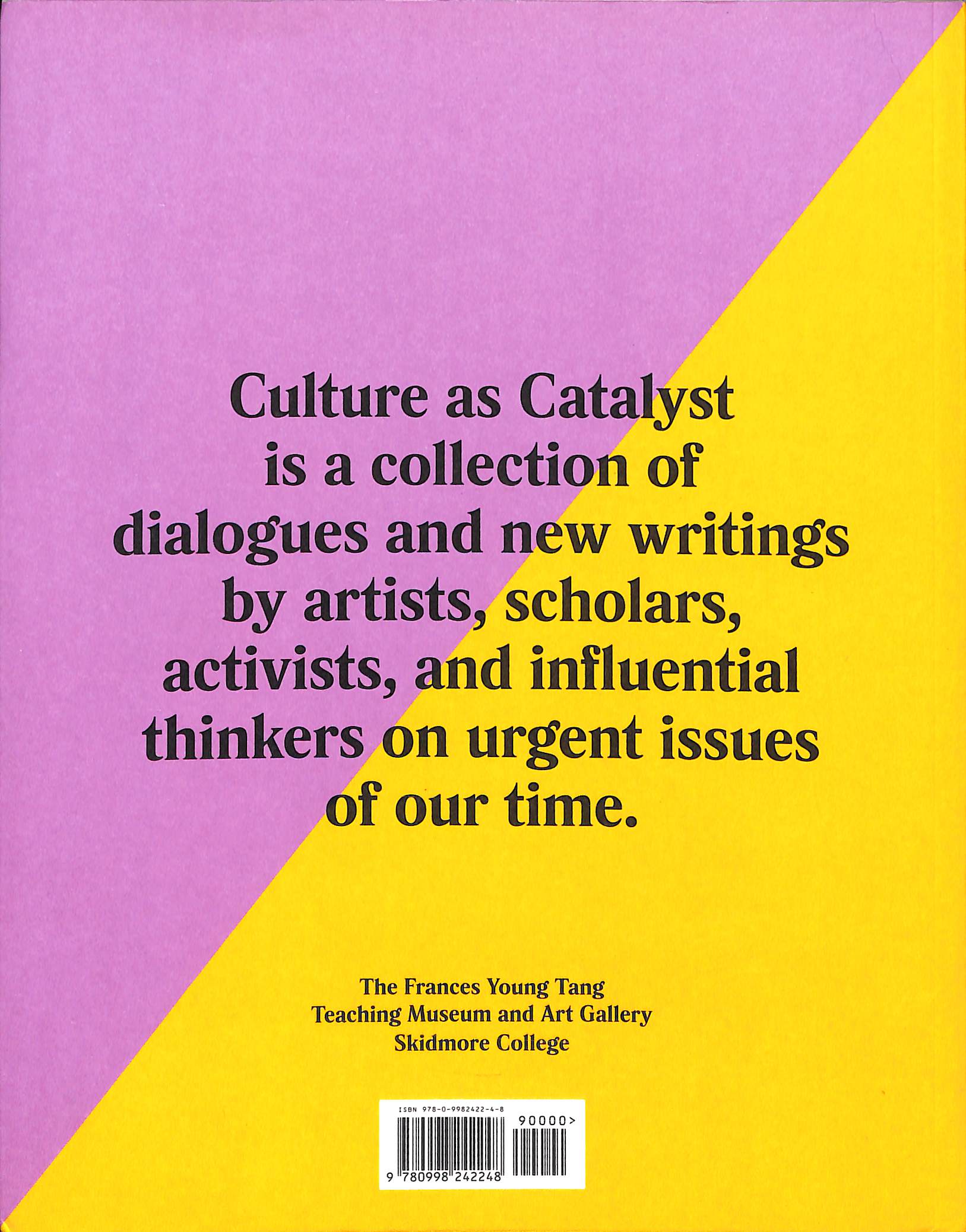 Culture as Catalyst is a collection of dialogues and new writings by artists, scholars, activists, and influential thinkers on urgent issues of our time. This critical publication accompanies the 2017–2019 Accelerator Series of public conversations held at the Tang Teaching Museum at Skidmore College, convened by then Tang Curator-at-Large Isolde Brielmaier. Topics include whiteness, migration, mass incarceration, feminism, monuments, citizenship, cultural appropriation, forgiveness, and food justice. The innovative thinkers that gathered for these community conversations remind us of the power of civil discourse and how genuine listening, critical thinking, and honest speaking are key to building empathy and knowledge. Culture as Catalyst is a compilation of their provocations—a compendium of diverse ways to make new connections, craft pathways to understanding, and spark change.