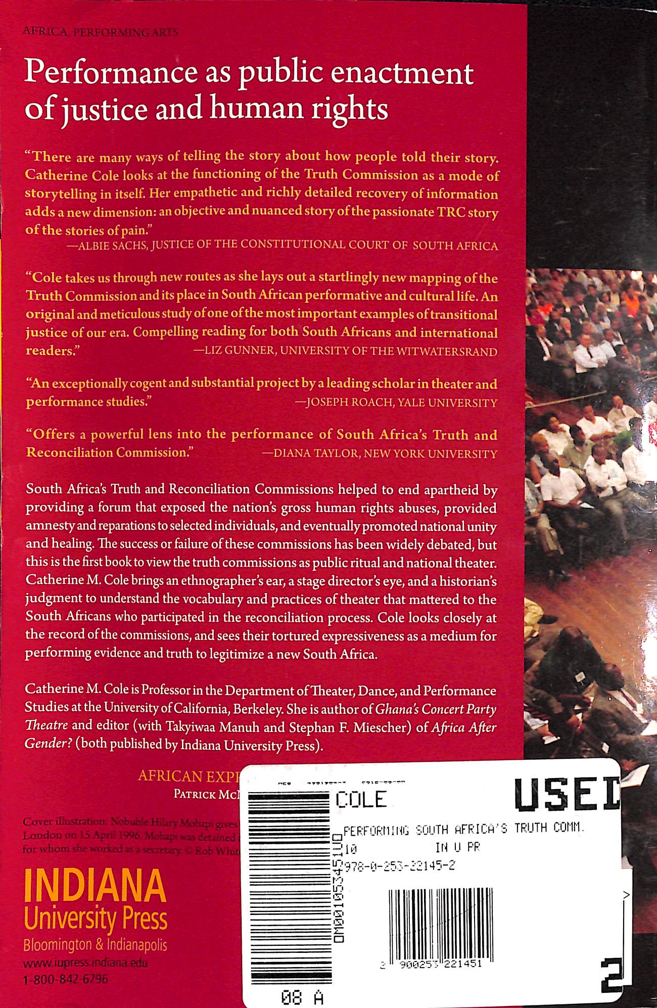 South Africa's Truth and Reconciliation Commissions helped to end apartheid by providing a forum that exposed the nation's gross human rights abuses, provided amnesty and reparations to selected individuals, and eventually promoted national unity and healing. The success or failure of these commissions has been widely debated, but this is the first book to view the truth commission as public ritual and national theater. Catherine M. Cole brings an ethnographer's ear, a stage director's eye, and a historian's judgment to understand the vocabulary and practices of theater that mattered to the South Africans who participated in the reconciliation process. Cole looks closely at the record of the commissions, and sees their tortured expressiveness as a medium for performing evidence and truth to legitimize a new South Africa.