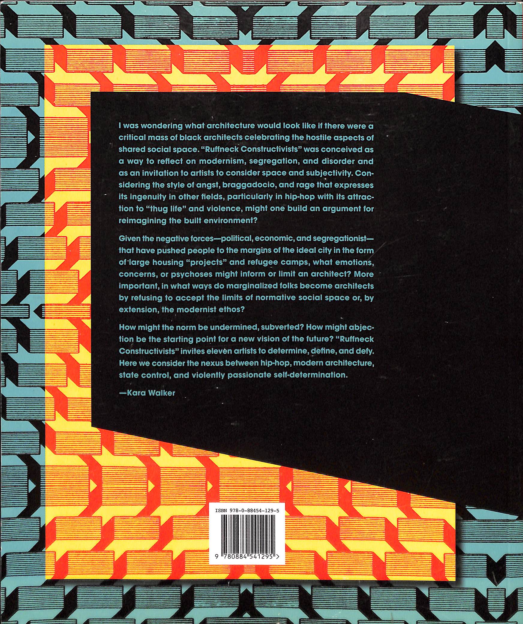 Ruffneck Constructivists, published to accompany a group exhibition curated by artist Kara Walker for the ICA Philadelphia, brings together 11 international artists in order to define a contemporary manifesto of urban architecture and change. Inspired by both the Russian Constructivists and MC Lyte’s 1993 hit song “Ruffneck,” the phrase “Ruffneck Constructivists” evokes thuggishness as an expression of abjection. As Walker states, “Ruffneck Constructivists are defiant shapers of environments. Whatever their gender affiliation, Ruffnecks go hard when all around them they see weakness, softness, compromise, sermonizing, poverty, and lack; they don’t change the world through conscious actions, instead they build themselves into the world one assault at a time.” The book features sculpture, photography and video by the artists Dineo Seshee Bopape, Kendell Geers, Arthur Jafa, Jennie C. Jones, Kahlil Joseph, Deana Lawson, Rodney McMillian, Pope.L, Tim Portlock, Lior Shvil, and Szymon Tomsia.