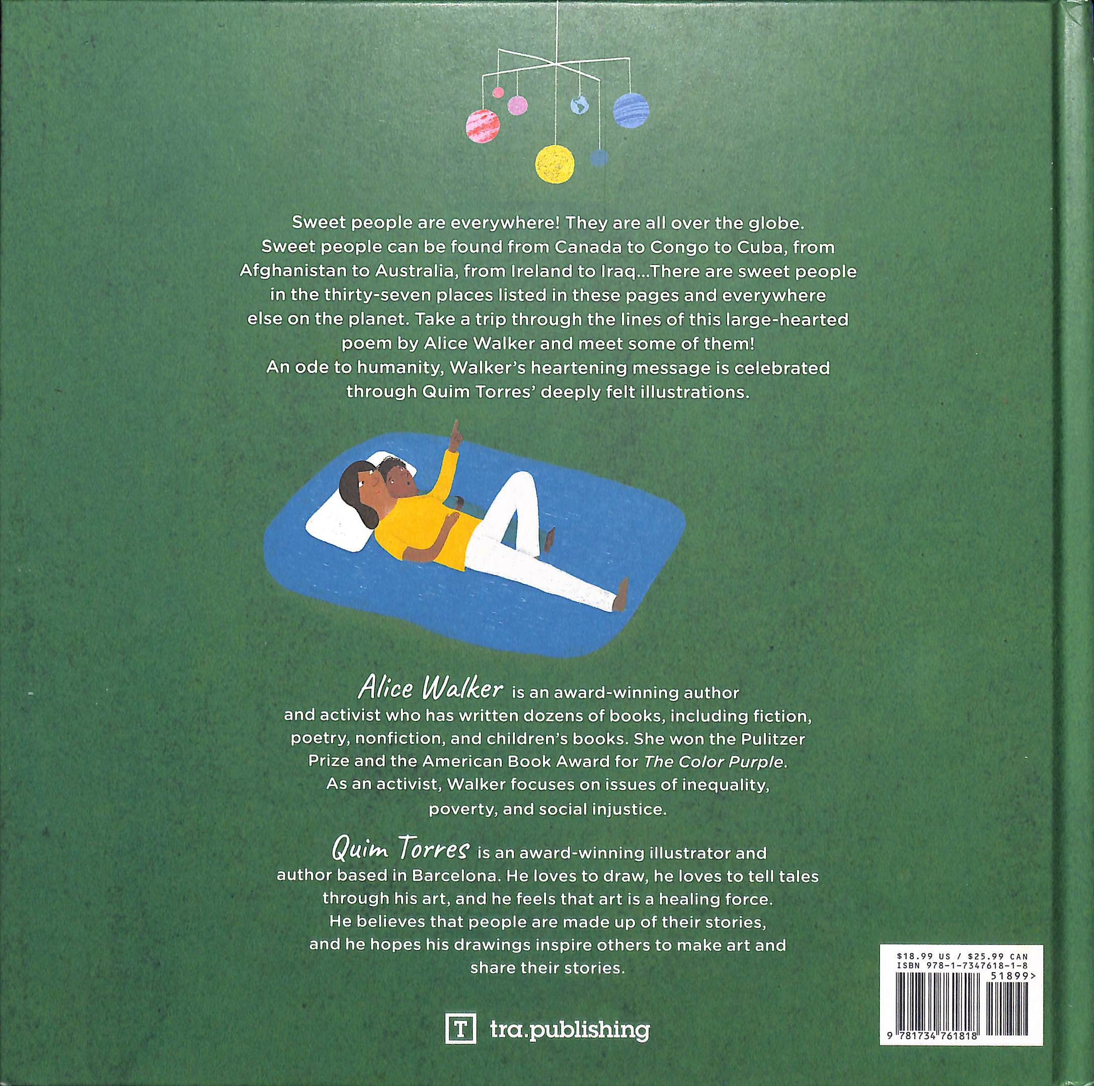 Sweet People Are Everywhere, an illustrated book for children ages 4–8 (and readers of all ages) by internationally renowned writer and activist Alice Walker, focuses on a common thread of the “sweet people” who can be found all over the world. The poem addresses a young boy getting his first passport, taking the boy—and the reader—on a journey through a series of countries around the globe. The poem is a powerful celebration of humanity and globalism, embodying a generosity of spirit that is inspiring, timely, and timeless.