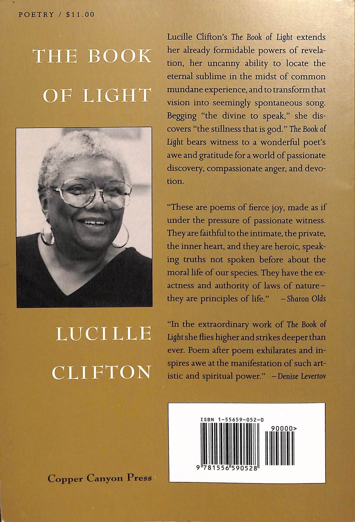 “Won’t you celebrate with me / what I have shaped into / a kind of life?” Lucille Clifton—one of the most important poets of the 21st century—published some of her most beloved poems in The Book of Light. The collection shines brightly into the shadows using Clifton’s formidable powers of revelation, her uncanny ability to locate the eternal in the midst of mundane experience, and to transform a vision into spontaneous song. Begging “the divine to speak,” Clifton discovers “the stillness that is god.” This book bears witness to a masterful poet’s awe and gratitude for a world of passionate discovery, compassionate anger, and devotion.