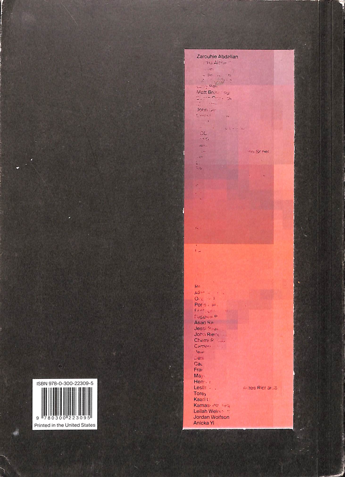 The catalogue for the 2017 Biennial features texts and images representing the participants, artists who work in a variety of media including painting, sculpture, photography, film, and performance, as well as essays by the two curators and contributions by the advisors. As a record of the artists and ideas presented in this year’s Biennial, it serves as an essential resource on current trends in contemporary art in the United States.