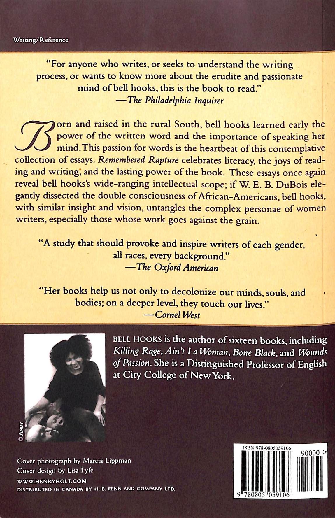 Born and raised in the rural South, bell hooks learned early the power of the written word and the importance of speaking her mind. This passion for words is the heartbeat of this contemplative collection of essays. Remembered Rapture celebrates literacy, the joys of reading and writing, and the lasting power of the book. These essays once again reveal bell hook’s wide-ranging intellectual scope; if W.E.B. DuBois elegantly dissected the double consciousness of African-Americans, bell hooks, with similar insight and vision, untangles the complex personae of women writers, especially those whose work goes against the grain.